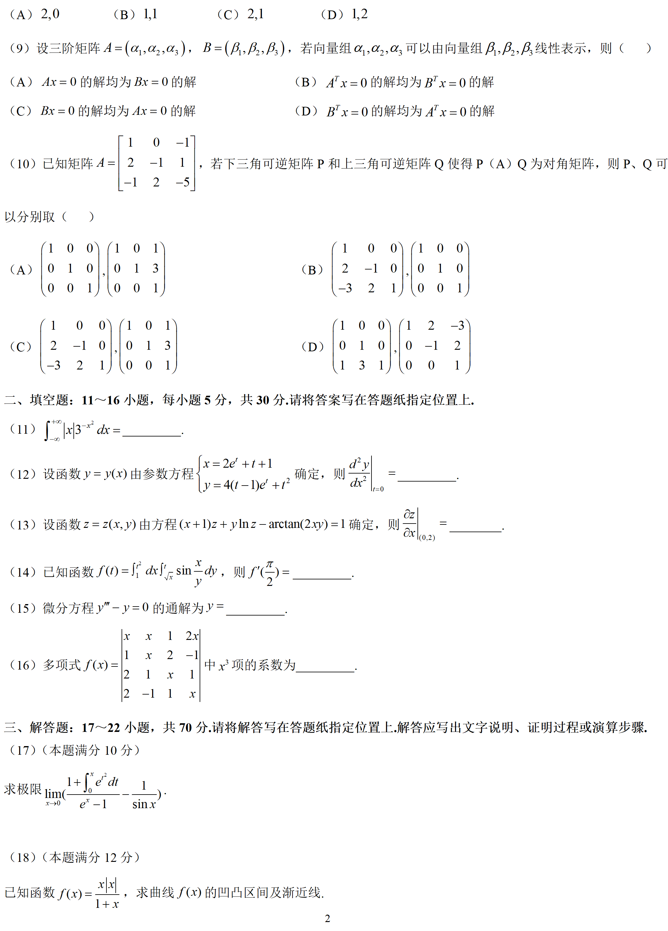 考研數(shù)學(xué)二歷年試題——2021年考研試題及答案解析 勤奮的考研人,感謝你的點(diǎn)擊!無(wú)論你的關(guān)注重點(diǎn)是考研數(shù)學(xué)歷年試題,還是2021年考研試題,又或是2021年考研試題答案解析,你都將在這里找到想要的干貨內(nèi)容。小編為大家整理了“考研數(shù)學(xué)二歷年試題——2021年考研試題及答案解析”的相關(guān)信息,快來(lái)了解一下吧! ![]() ![]() ![]() ![]() ![]() ![]() ![]()